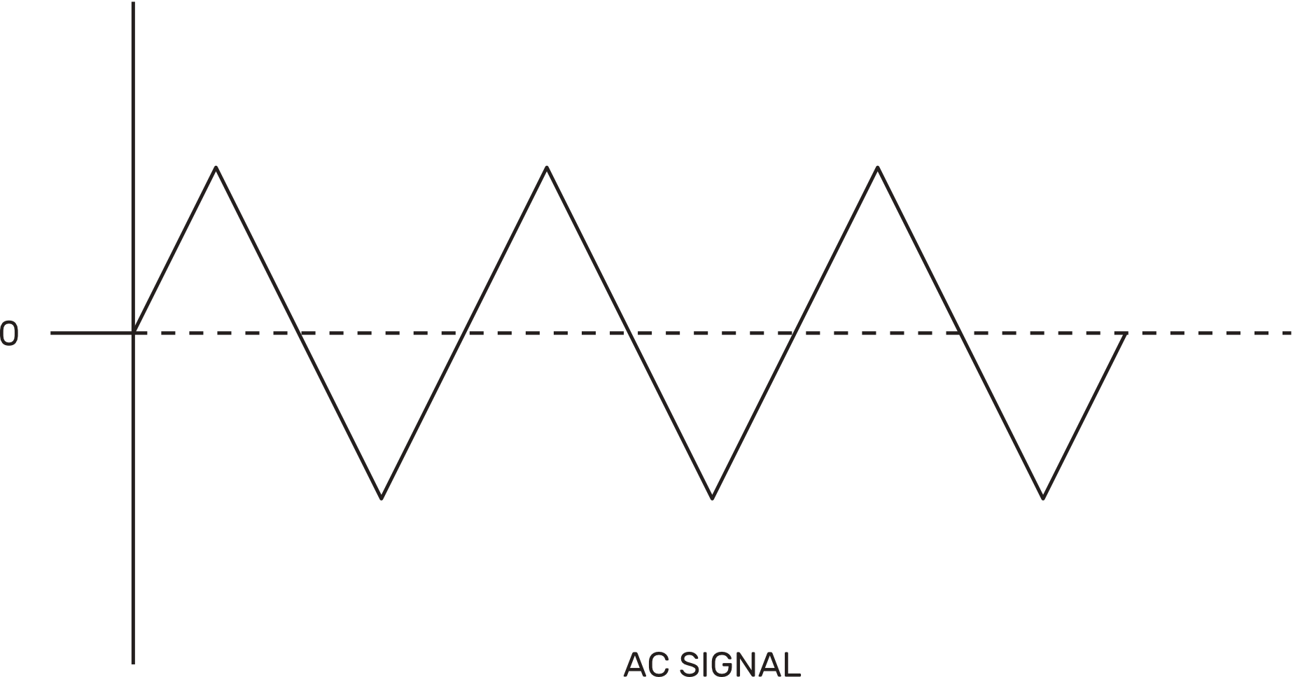 In the real world, we call an AC Signal any signal whose voltage varies continuously with time, like an audio signal, and a DC Signal a signal of constant non-zero voltage value, like a V/Oct signal. However, most of the signals we use in Eurorack, such as the V/Oct, could be considered AC, as their voltage, although not as fast as in an audio signal, also changes over time. So, what do we do?